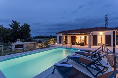 In front of the house is beautiful terrace with private swimming pool, sun beds, outdoor shower (solar energy), and covered part with terrace furniture.