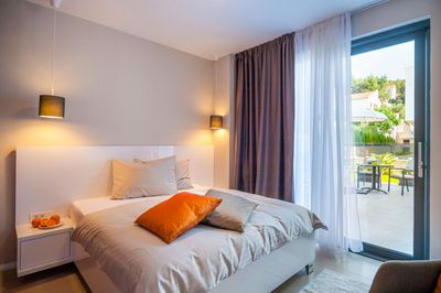 Sun beds by the pool, garden furniture, outdoor dining area, and an outdoor traditional stone barbecue (BBQ) at the front terrace enriched with greenery, plants and maintained lawn give a special Mediterranean charm to the entire property. Also, the proximity of UNESCO protected cultural and historical monuments in towns Trogir and Split will really satisfy the most demanding guests with various interesting entertainment programs and gastronomy.