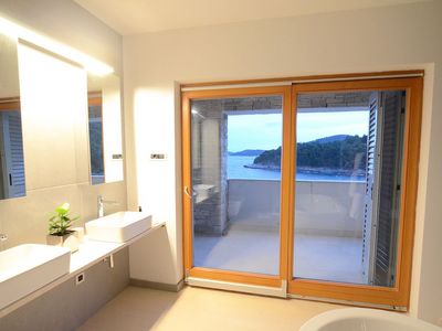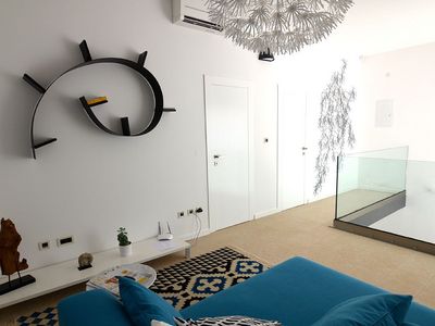 Two double bedrooms sharing a bathroom and a terrace with an open sea view are set on the second floor. Beautiful gallery with sofa bed is on the second floor also.