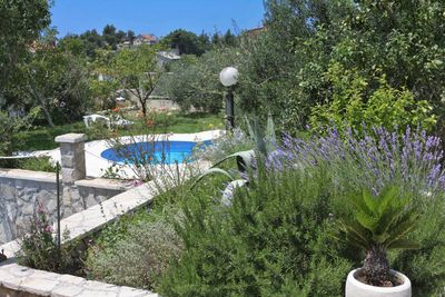 The luxury villa is set in an extensive garden where the guests have 2 swimming pools at disposal, a gazebo with summer kitchen.fireplace and a beautiful organic garden full of vegetables and fruits. Distanced only 500 m from the city center and 600 m from lovely Makarska beaches this villa is a great choice for families with children. The villa is completely enclosed within the courtyard parking for 3-4 cars.