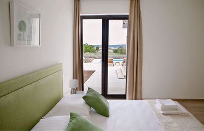 Central part of large, private outdoor area is swimming pool and terrace from where you may enjoy amazing views at the sea and surrounding nature with olive and cherry trees, as well as lavender and other Mediterranean plants.