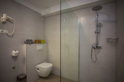 This apartment also has 2 bedrooms; first bedroom is with double bed, and second bedroom is with single bed from which is possible to roll on one more extra bed. There is also one spacious bathroom with shower, and one separated toilet room with washing machine.